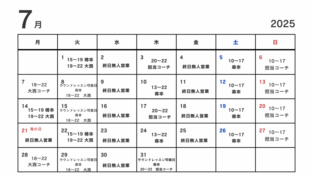 📢【7月スケジュールのお知らせ】