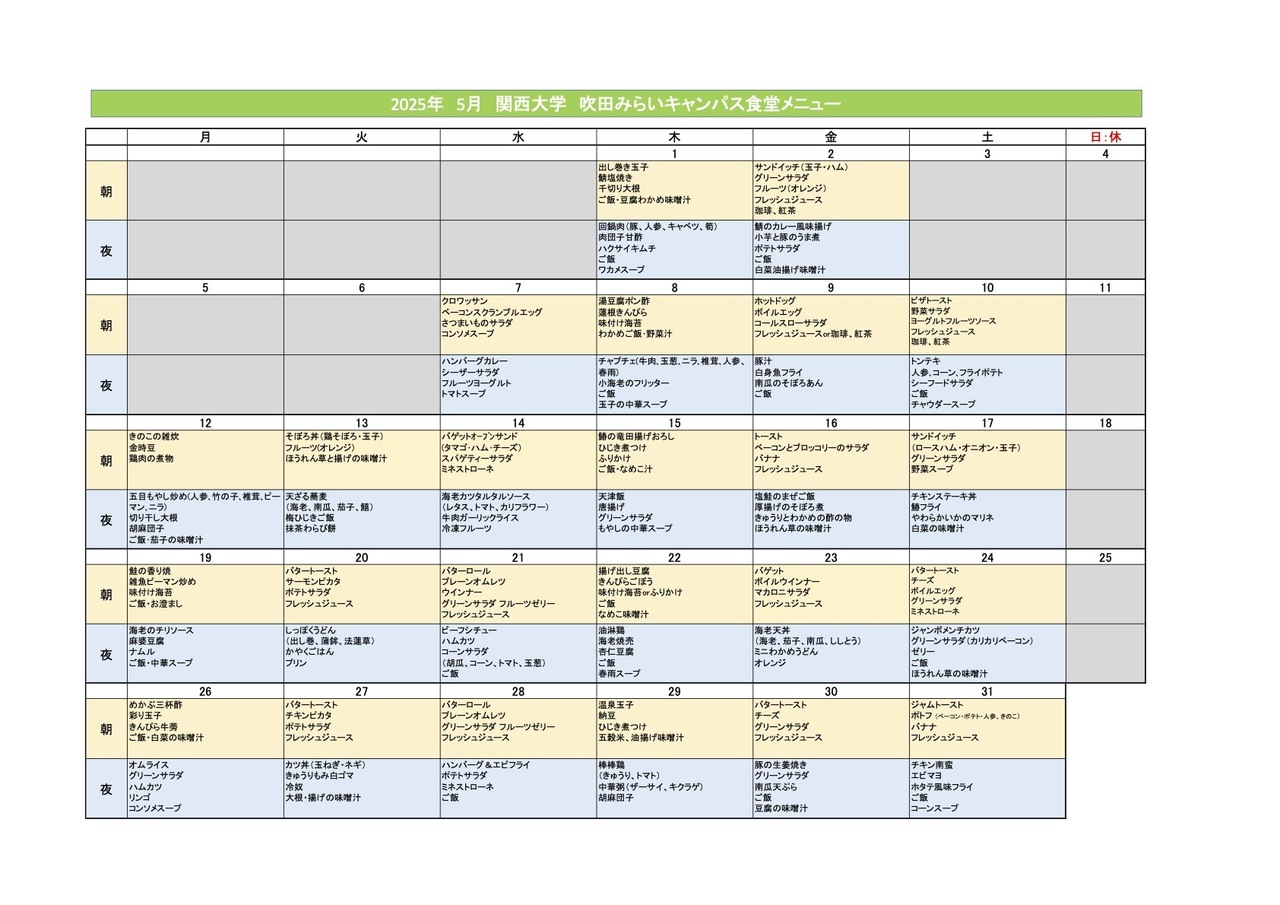 2025年5月メニューです