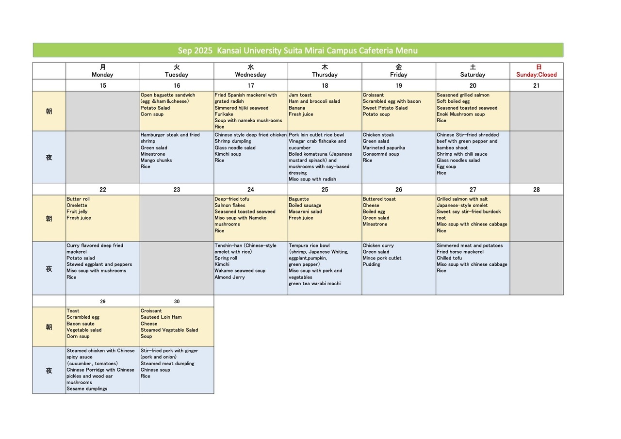 September menu released.
