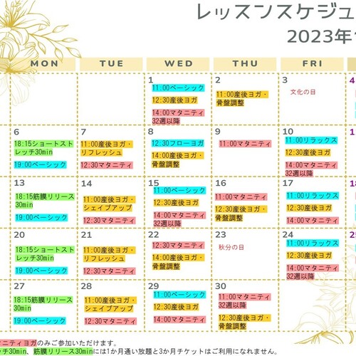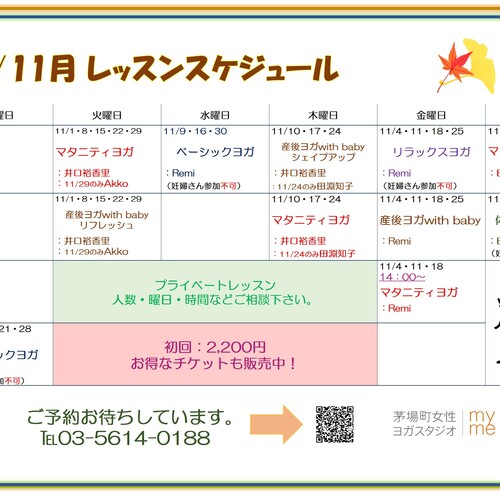 • 2022年10月31日🍁11月スケジュールのお知らせ🍁
