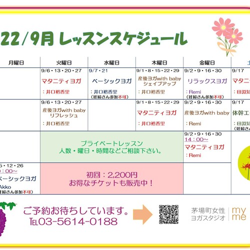 • 2023年8月30日9月のレッスンスケジュール