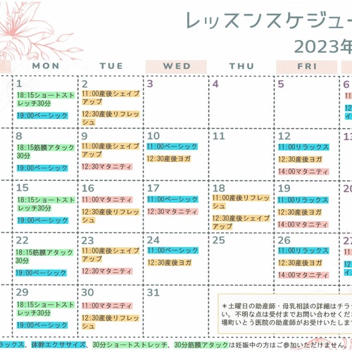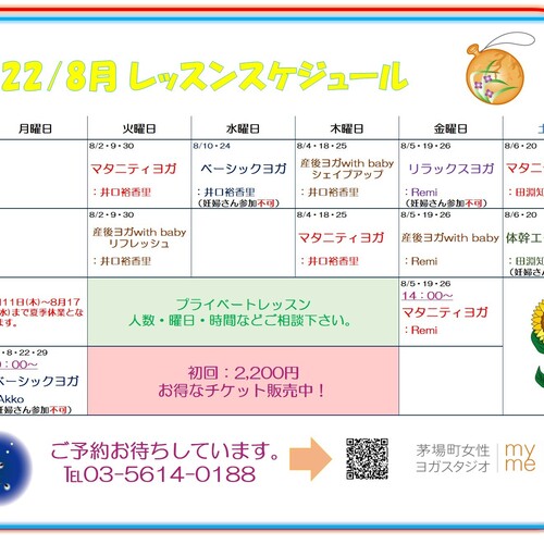 • 2023年7月20日🌻8月のレッスンスケジュール🌻