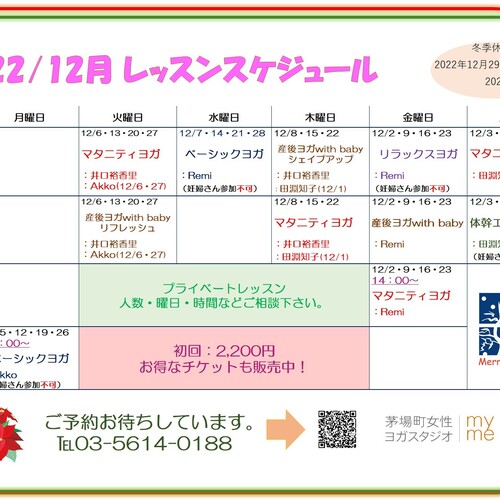 • 2022年11月22日🎄12月スケジュールのお知らせ🎄