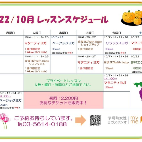 • 2022年9月21日🌰10月スケジュールのお知らせ🌰