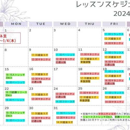 • 2023年12月27日🐉2024年1月のレッスンスケジュール🐉