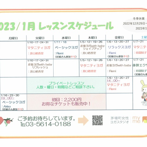 • 2022年12月23日🎍2023年1月スケジュールのお知らせ🎍