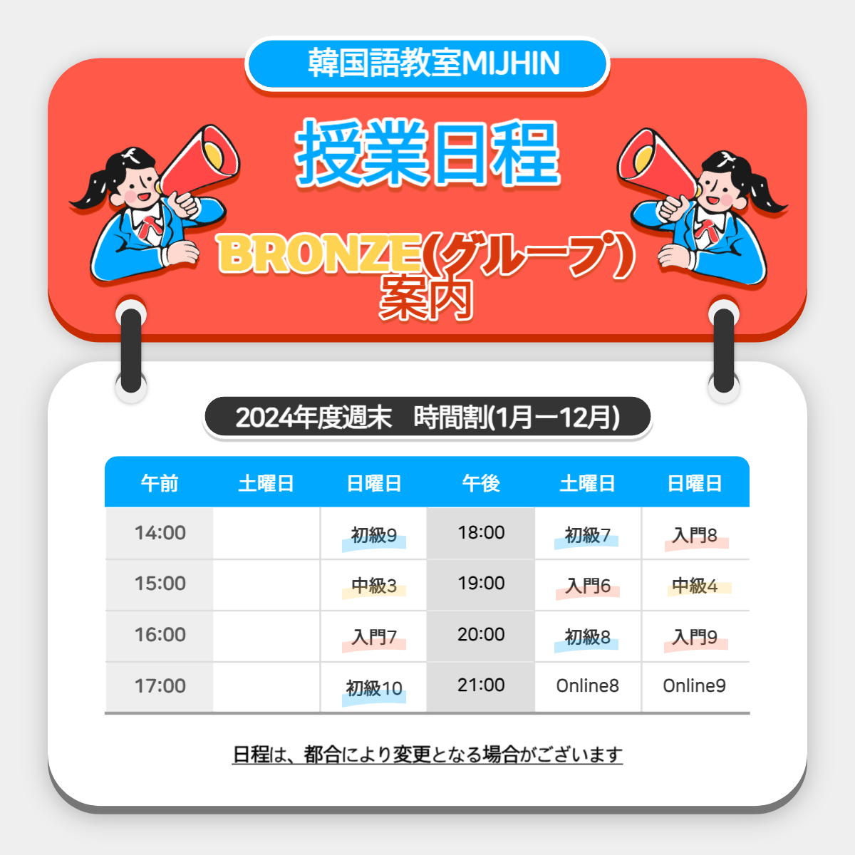 BRONZE(グループ)レッスンの案内<週末>