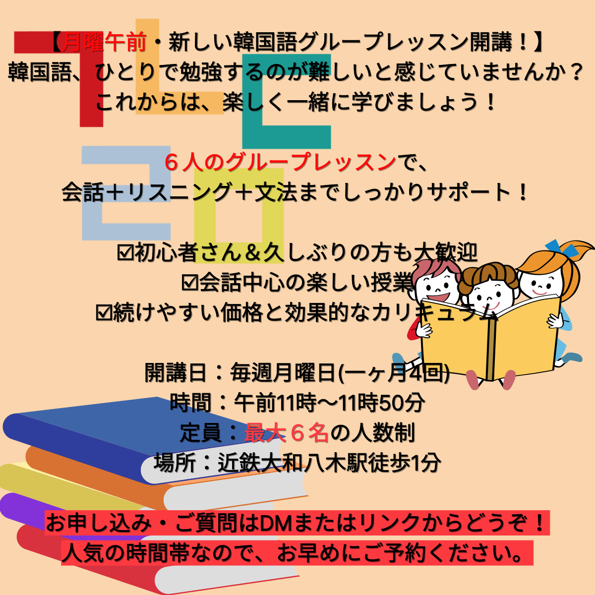 【月曜午前・新しい韓国語グループレッスン開講!】