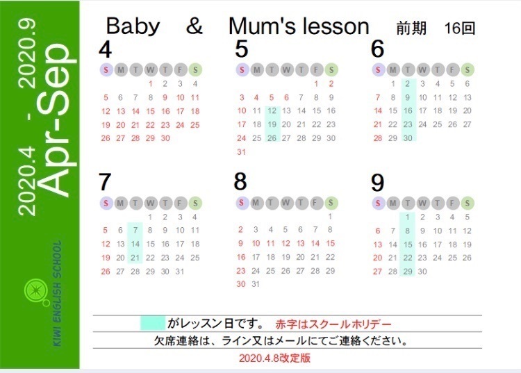 ベビー&ママクラスのスケジュール