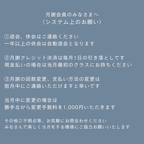 退会、休会は、手動で行いますのでLINE等でご連絡ください
