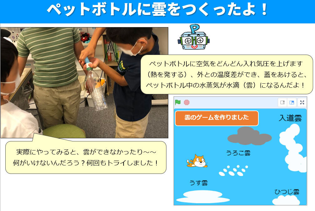 ペットボトルに雲をつくったよ!10種類の雲(十種雲形)をつかってプログラミングでゲーム作り!