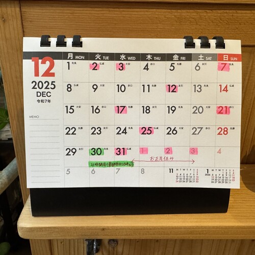 謹賀新年の挨拶&1月のお休みのお知らせです☆