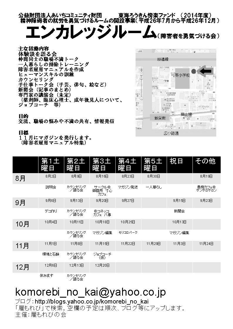 精神障碍者の就労を勇気づけるルームの開設事業(平成26年7月から平成26年12月)