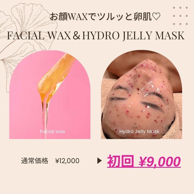 クレンジング、Wax、ハイドロジェリーマスク、ヘッドマッサージ付き