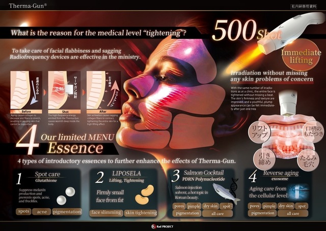 リフトアップ、シワ、タルミの改善、細胞活性化、ハリ艶アップ◎