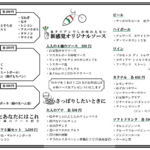 「大人の串カツ 魚タリアン」を曜日限定営業致します。