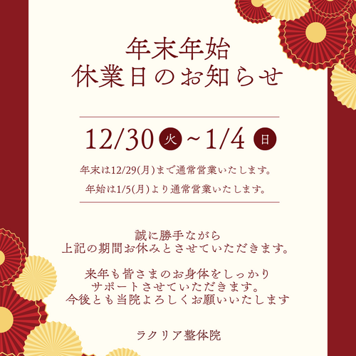 今年もラクリア整体院をご愛顧いただきありがとうございました。