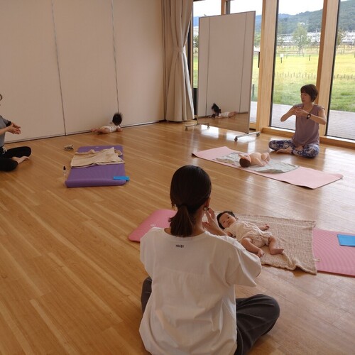 ママのケアもできるベビーマッサージ&親子ヨガレッスン、キッズ向けバランスボールレッスンを行っています。