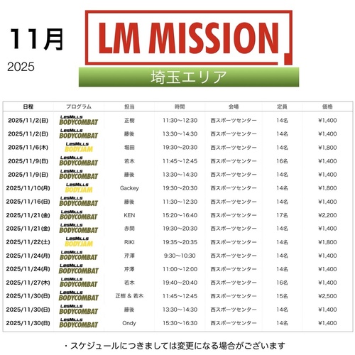 2025年11月埼玉予約スケジュール