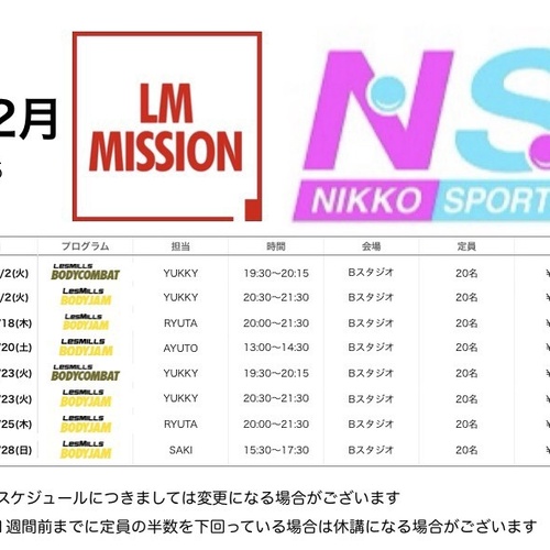 2025年12月関西BODYJAM予約スケジュール