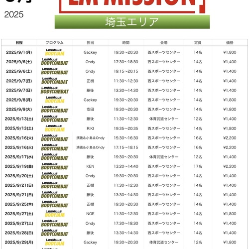 2025年9 月埼玉予約スケジュール
