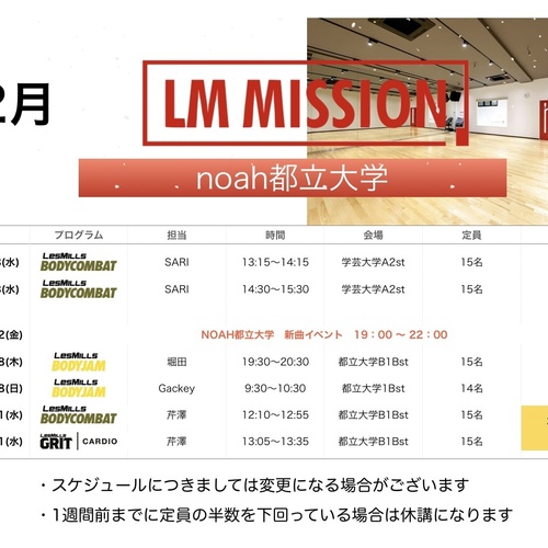 2025年12月noah都立大学スケジュール
