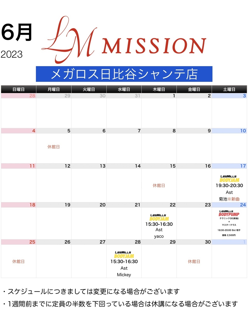 2023年6月メガロス日比谷シャンテ店スケジュール