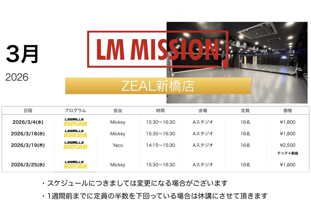 2026年3月ZEAL新橋店スケジュール