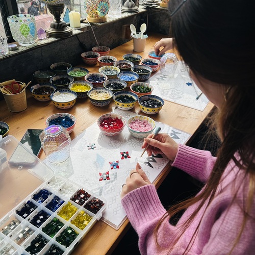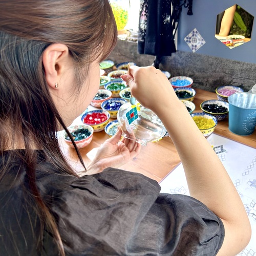 当アトリエでは、初めての方でもスタッフの丁寧なガイドで 世界にひとつだけのトルコランプ を楽しく作成できます。