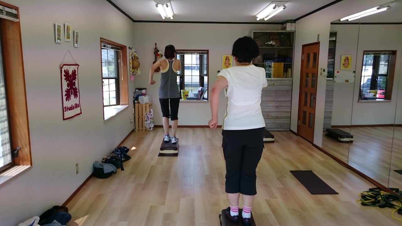 クラスでは、ステップ台の登り降りを繰り返して心拍数をあげていくのですが