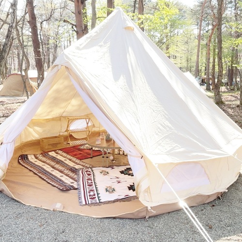 キャンプ場の大自然を、おしゃれなテントとキャンプギアでお楽しみください♪