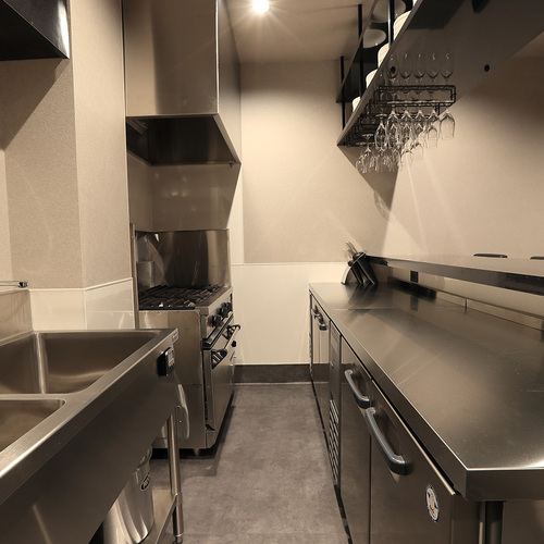 食材のみ持っていけば事足りるほどほとんど揃っているので安心です。20人規模でも食器もグラスも十分あります。なによりトイレが各階にあり、綺麗。スペースもきれい。ダウンライトでオシャレ。製氷機もあるのでうれしい。若干入口がわかりにくいのですが、覚えてしまえば隠れ家的なスペースということでそれも良し。