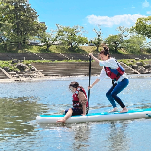 まちなかリバーSUPでは、ボードの上に座り自分と向き合い、水上で風を感じながら、五感を研ぎ澄まし日常の疲れがスーっと消えていく。そんな特別な時間を体験することができます。また、SUPを漕ぎながら街のシンボルである岡崎城を眺めたり、橋の下をくぐったりするなど、まるで探検をしているようなワクワク感を味わっていただくことができます。