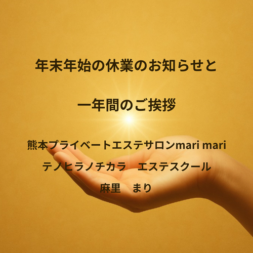 年末テノヒラノチカラ エステスクール開校への想い|テノヒラノチカラ™ エステスクール年始の休業のお知らせと一年間のご挨拶|熊本プライベートエステサロン marimari 心を満たす小顔・心身ケア