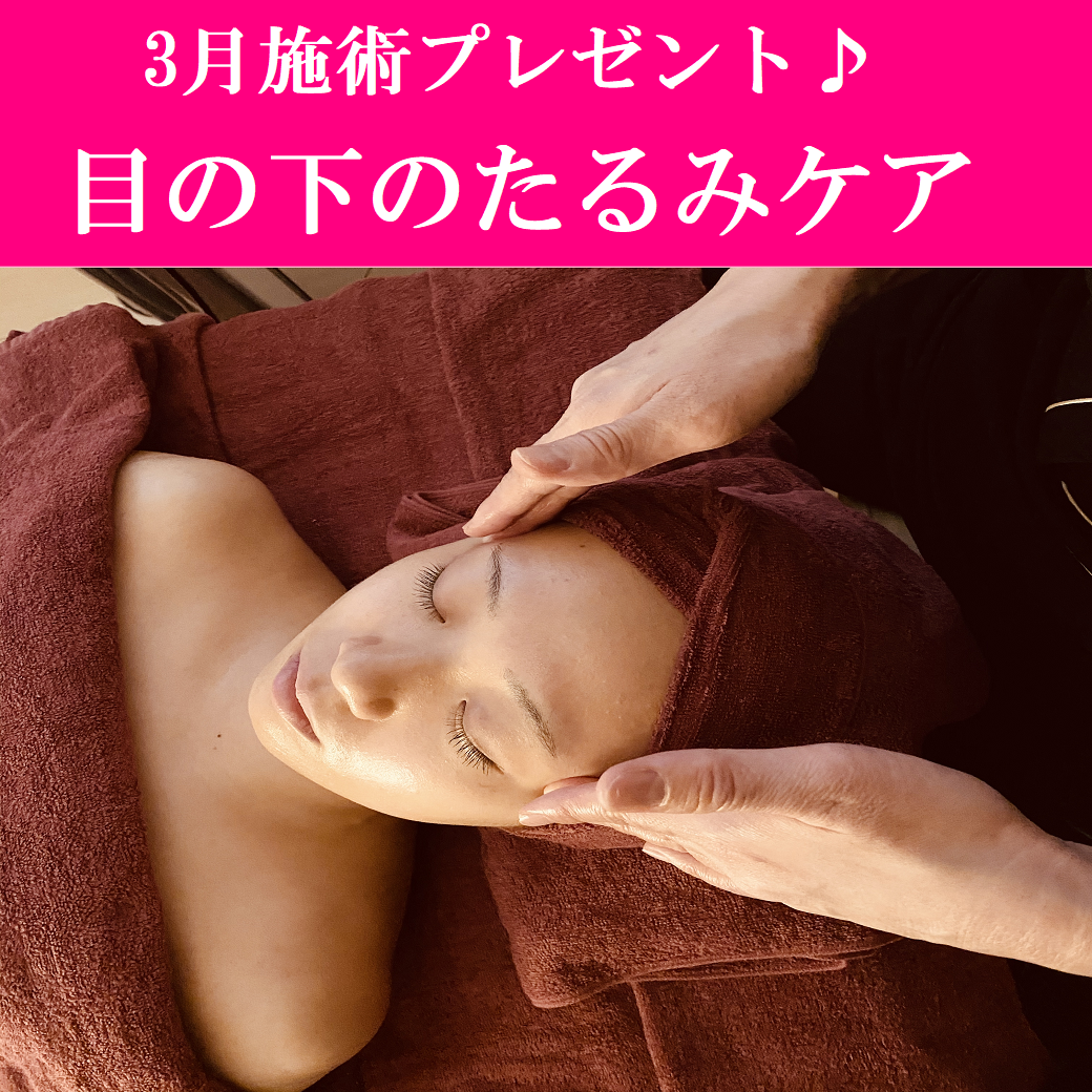 目の下のたるみ解消♪3月施術プレゼント|熊本プライベートエステサロン mari.mari 肩こり解消・フェイシャルエステ