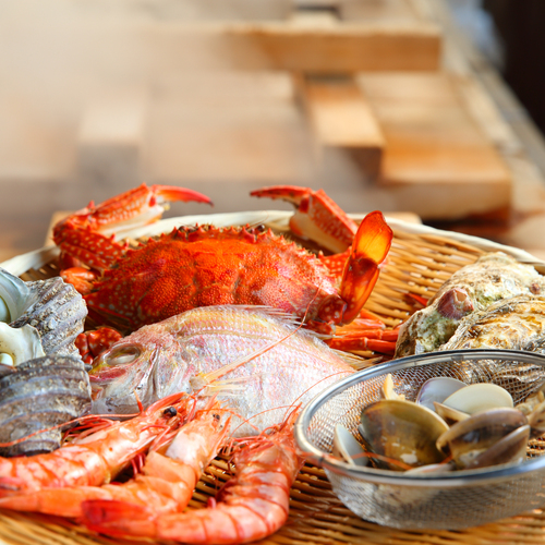 バーベキュー海鮮セット、テイクアウト刺し盛り、別府温泉の観光名物「地獄蒸し」海鮮セット、素泊まり宿に持ち帰りの刺し盛りなどのご予約を承っております。