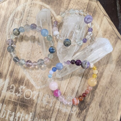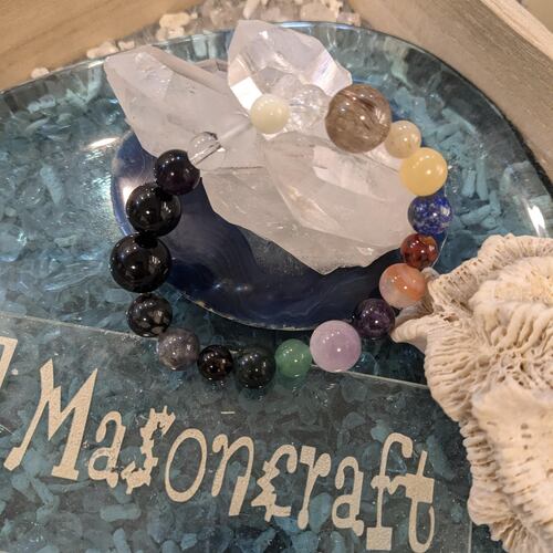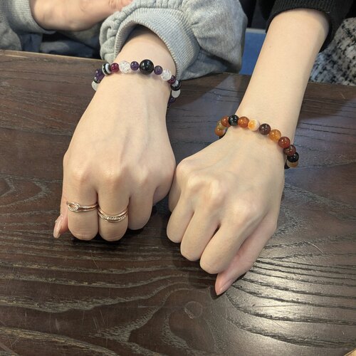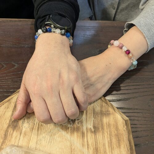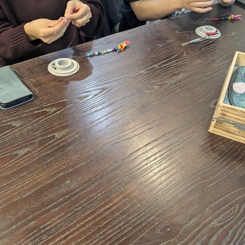 2年前初体験、その時の友人と一緒に今回リピートです。先生も、お店の素敵な雰囲気も前回と変わらず、とてもリラックスしてパワストーンのブレスレット作りを楽しみました。制作過程を説明、サイズを決めて使う石選び、その後糸を通して完成。仕上げに音叉使って浄化。記念撮影の時間もあります。
