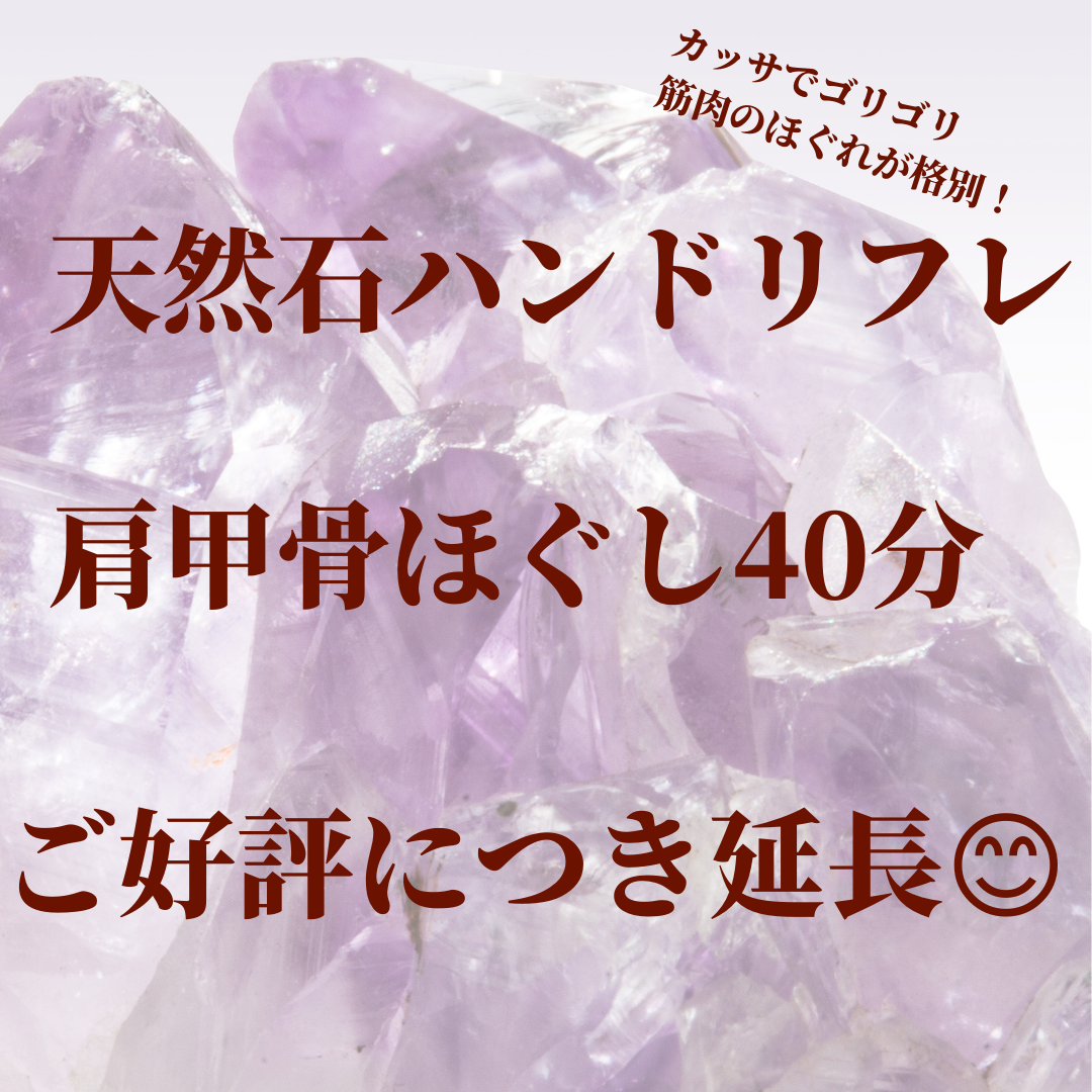 ご好評につき延長😊天然石ハンドリフレ+肩甲骨ほぐし40分!!