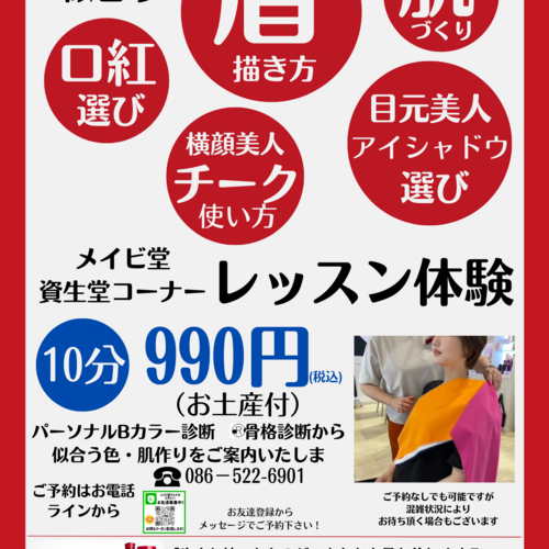 ・メイビ堂マルナカ新倉敷店(以下、「当店」という)は、STORES株式会社よりご予約のお客さまの個人情報の提供を受け、STORES株式会社と当店とで、それぞれの個人情報の取り扱いに関する規程にもとづきお客さまの個人情報を管理いたします。