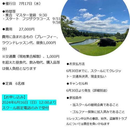 日帰りラウンドレッスン 7/17(水)オリムピック・カントリークラブ