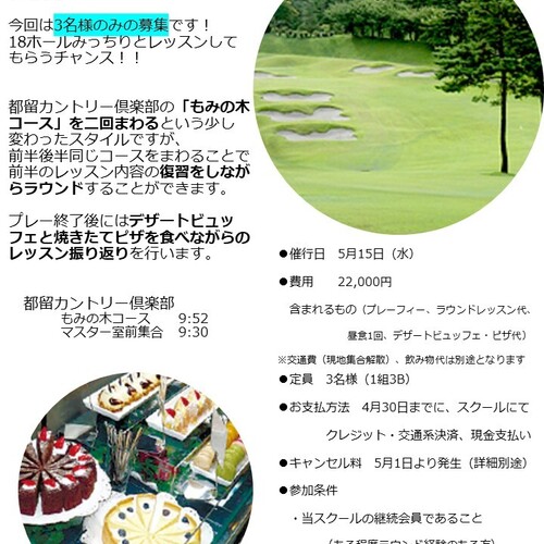 日帰りラウンドレッスン 5/15(水)