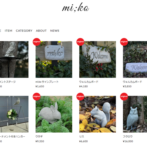 オリジナルの他に、mi;koが厳選したおしゃれな雑貨などもセレクトして販売しております。