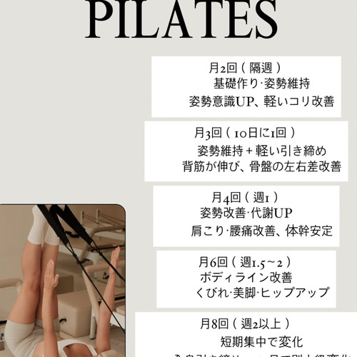 ピラティスは初めてだったので、ドキドキでしたが、丁寧な指導で、全身の筋肉が伸びるかんじがとても心地よかったです。これからも続けていって、バランスのとれた体を目指したいです!