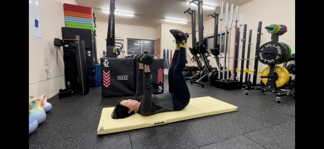 ダンベルフロアプレス&レッグレイズ