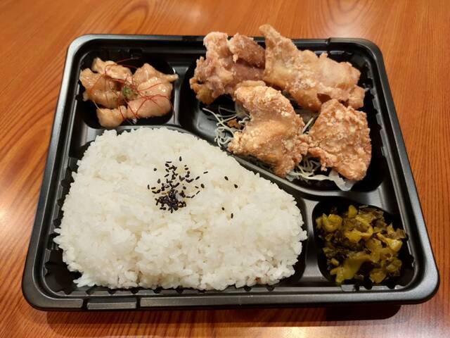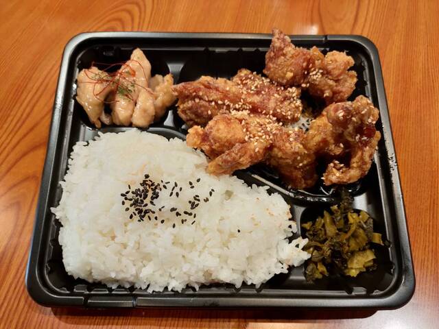人気のからあげMIXと鶏皮餃子がセットではいており、大人気の弁当です。ボリュームがあり満腹感抜群!!