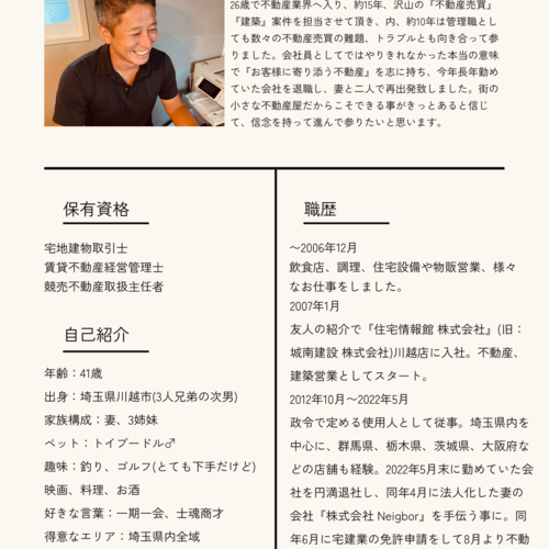 お住まいの買い方、売り方、貸し方、借り方、物件探しや住宅ローン、相続に関する不動産のご相談や投資用不動産についてなど、「不動産」に関する全てのご相談を承っております。初めての事ばかりで何から進めていいのかわからない方の為に、オンライン無料相談を開設しております。是非気軽にご利用ください!
