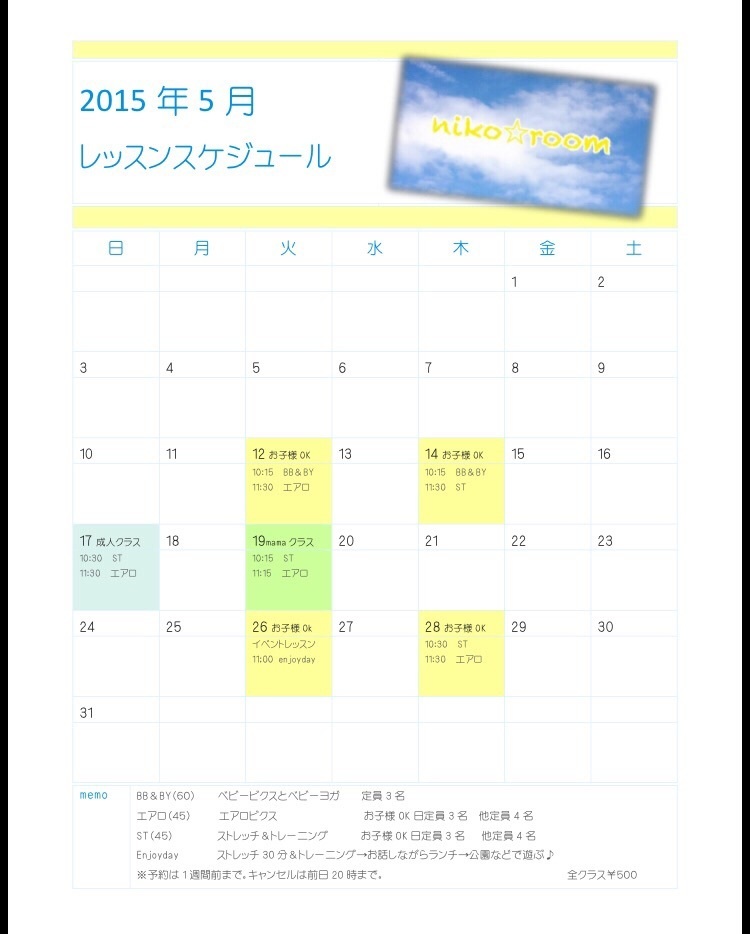 キャンセルは基本3日前まで。それ以降のキャンセルは基本的に他の日に振り替えにします。が、体調不良やお子様の体調が不安な時は遠慮なくご連絡ください。