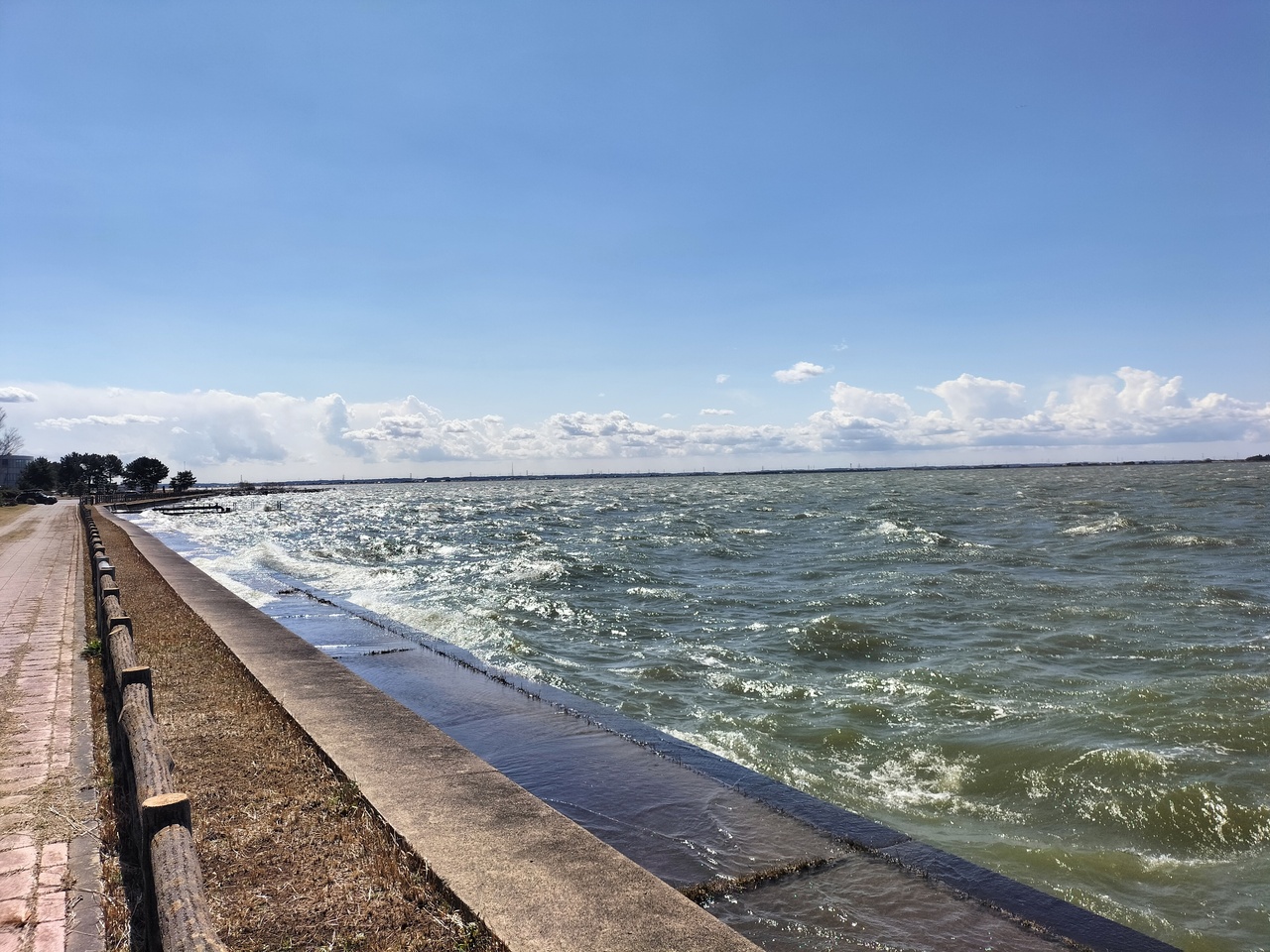 湖は大荒れ。