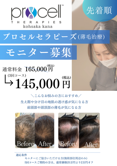 ・施術後24時間は髪を洗えなくなってしまうので、当日の朝洗髪してきて頂くのをお勧めします。