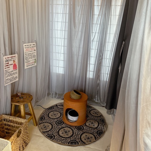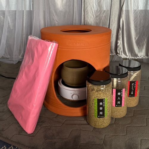 Asuca製の黄土100%の座器と無農薬のよもぎ他26種類の漢方を使用した蒸気浴です